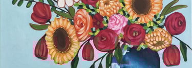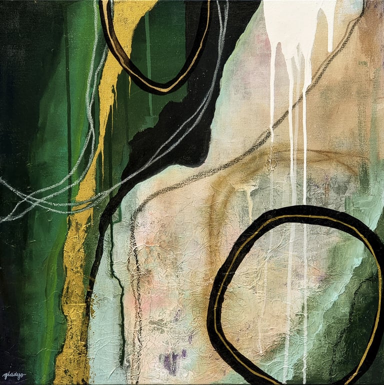 Art has been part of Gladys's life since childhood, but it became a deeper, more intentional pursuit after her medical retirement. During that time, art shifted from being a passion to something that anchored and healed her. It eventually became a daily ritual of presence, reflection, and gratitude. Her process focuses not on perfection or planning, but on listening and allowing each layer, mark, or shape to unfold naturally. She views the world through texture, rhythm and the quiet in-between. She believes beauty exists in the smudges, pauses and moments where color fades or settles unexpectedly.