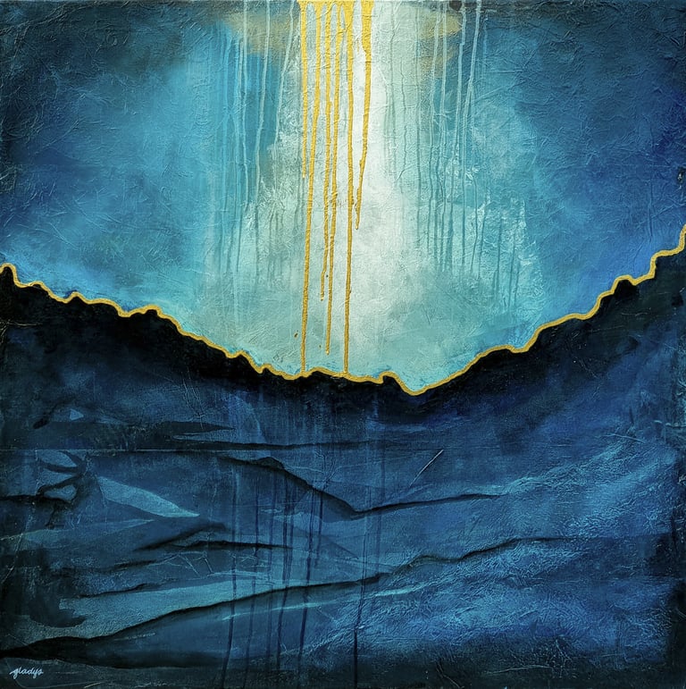 Gladys is currently focused on making more abstract works with acrylic on canvas. She is looking for ways to add depth and complexity using a myriad of materials. As she develops a cohesive body of work, she is carving out her space in the contemporary art world through exhibitions and gallery opportunities. Her paintings offer anyone who views them a quiet invitation to pause, to feel and to reconnect with their own sense of wonder.